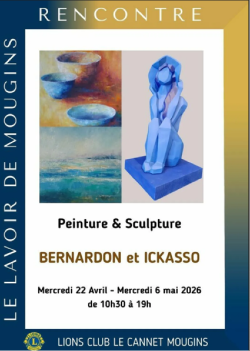L’art s’invite à Mougins avec une rencontre artistique originale proposée par le Lions Club Le Cannet Mougins. L’exposition Rencontre : Bernardon and Ickasso met à l’honneur deux univers créatifs à découvrir ensemble. D’un côté, les œuvres de Bernardon, de l’autre celles de Ickasso, deux artistes aux styles différents mais complémentaires. Cette exposition invite le public à parcourir leurs regards, leurs techniques et leurs inspirations, dans un dialogue artistique riche et surprenant. Une belle occasion de découvrir l’art sous toutes ses formes tout en soutenant les actions solidaires portées par le Lions Club. Un rendez-vous culturel et convivial pour les amateurs d’art comme pour les curieux.