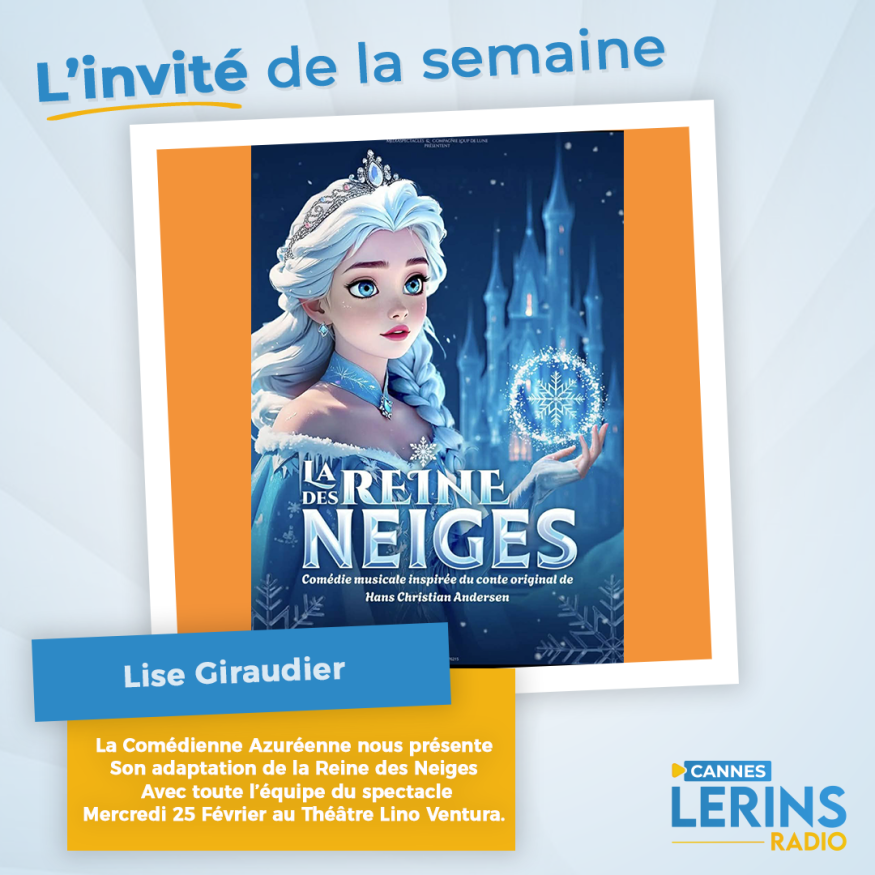 Dans l'émission l'invité de la semaine, Loric reçoit Lise Giraudier Comédienne au Casting de la Comédie Musicale la Reine des Neiges actuellement en tournée. Elle vous donne rendez-vous ce mercredi 25 février à 15h au Théâtre Lino Ventura. Présentation et questions / réponses sont au programme de cet interview.