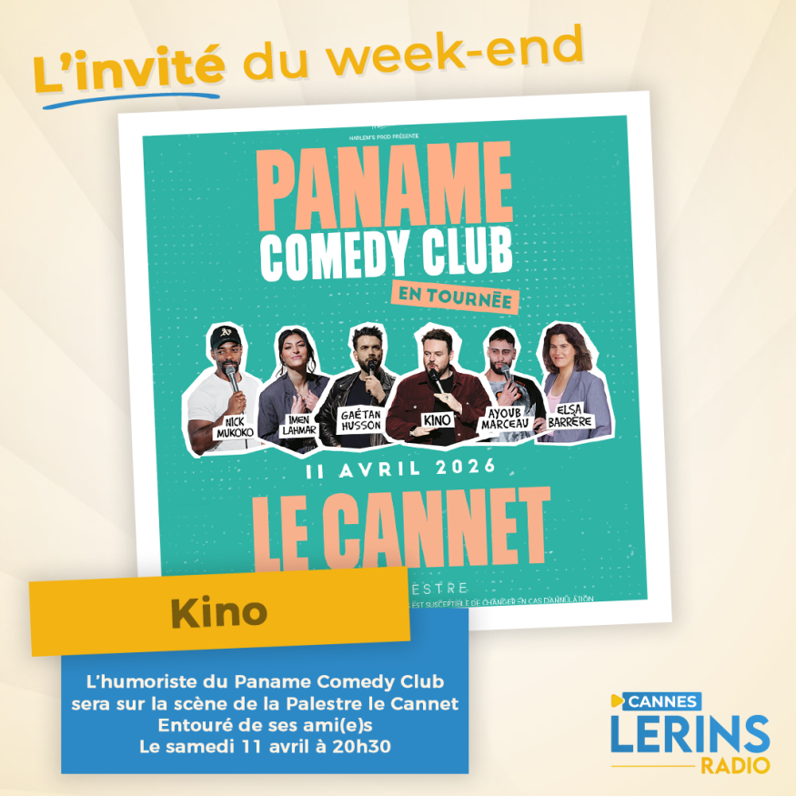 Dans l'émission l'invité du week-end, Loric reçoit l'humoriste Kino du Paname Comédy Club entouré des autres humoristes : AYOUB MARCEAU, ELSA BARRÈRE, IMEN LAHMAR, NICK MUKOKO & GAETAN HUSSON. Kino vous donne rendez-vous le samedi 11 avril à 20h30 à la Palestre le Cannet pour rire rire et encore rire. Présentation et questions / réponses sont au programme de cet interview.
