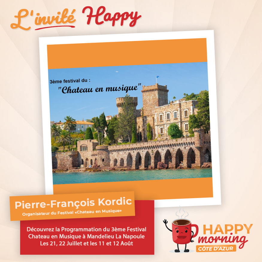 Dans l'émission happy morning Côte d'Azur, Loric reçoit Pierre-François Kordic dans le Cadre du 3ème Festival de "Chateau en Musique"plus d'info sur : https://www.mgart06.fr/prochains-concerts/ . Présentation et questions / réponses sont au programme de cet interview.