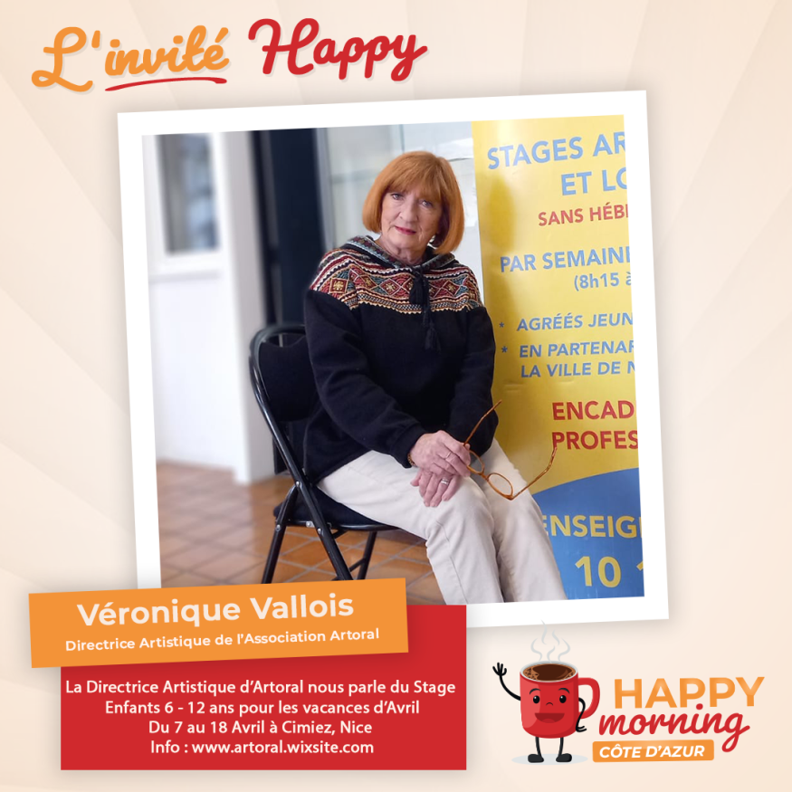 Dans l'émission happy morning Côte d'Azur, Loric reçoit la Directrice Artistique Véronique Vallois pour ses prochains Stages enfants à Nice-Cimiez. Présentation et questions / réponses sont au programme de cet interview.