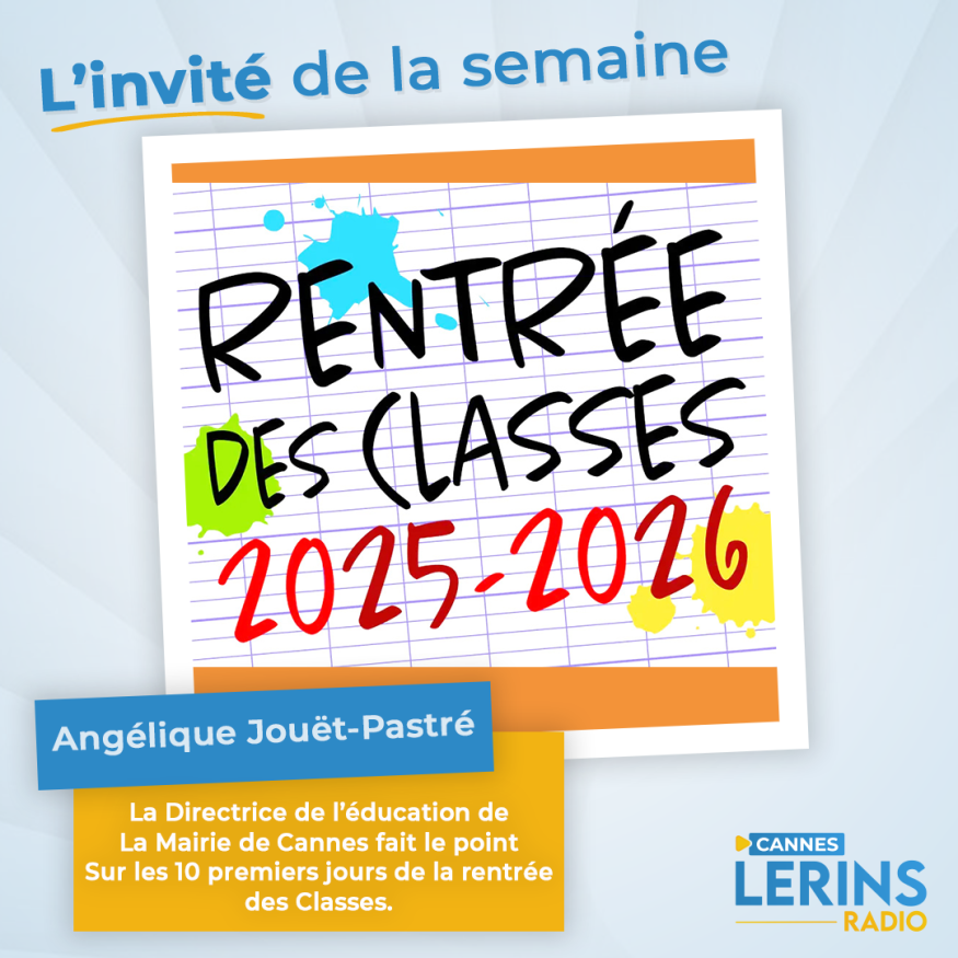Dans l'émission l'invité de la semaine, Loric reçoit Angélique Jouët-Pastré Directrice de l’Education à la Mairie de Cannes pour faire un point sur la rentrée scolaire. Présentation et questions / réponses sont au programme de cet interview.