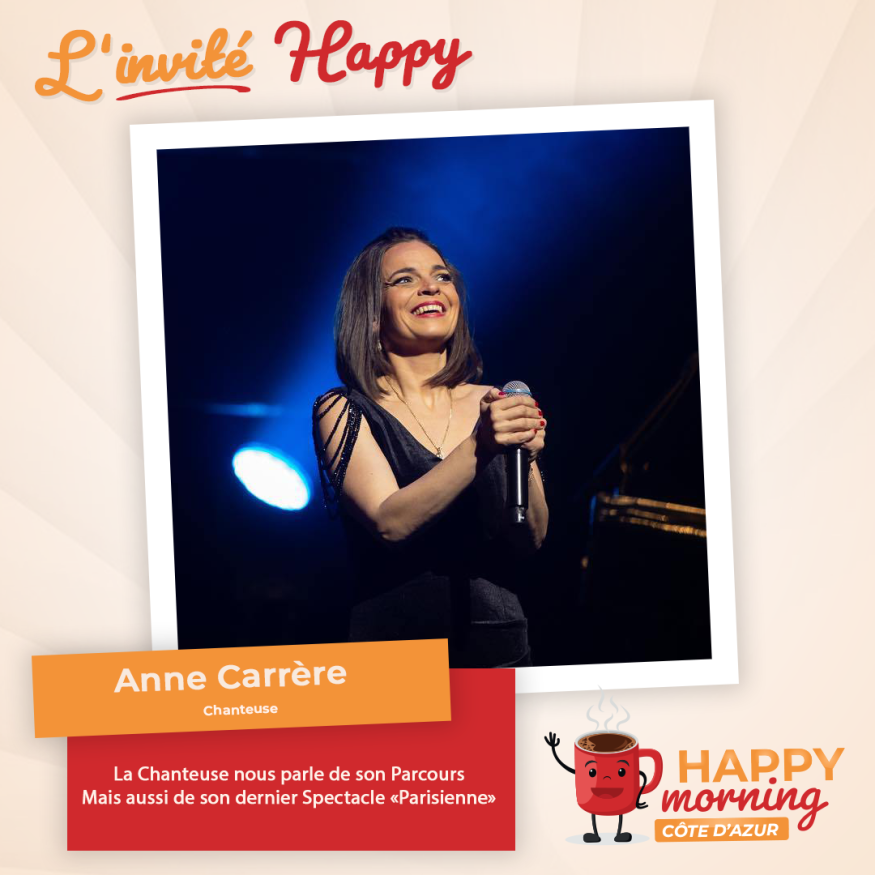 Dans l'émission happy morning Côte d'Azur, Loric reçoit la Chanteuse Anne Carrère de Piaf à son nouveau spectacle Parisienne qu'elle joue dans le département des Alpes-Maritimes. Présentation et questions / réponses sont au programme de cet interview.