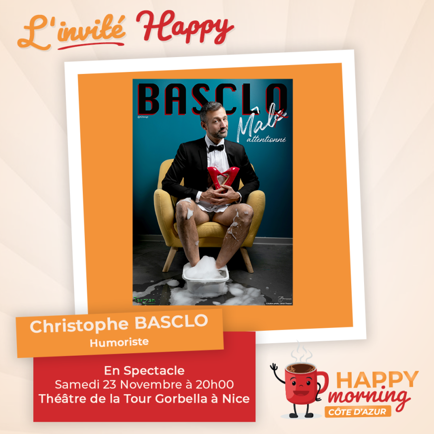Dans l'émission happy morning Côte d'Azur, Loric reçoit Christophe Basclo Humoriste. Présentation et questions / réponses sont au programme de cet interview.