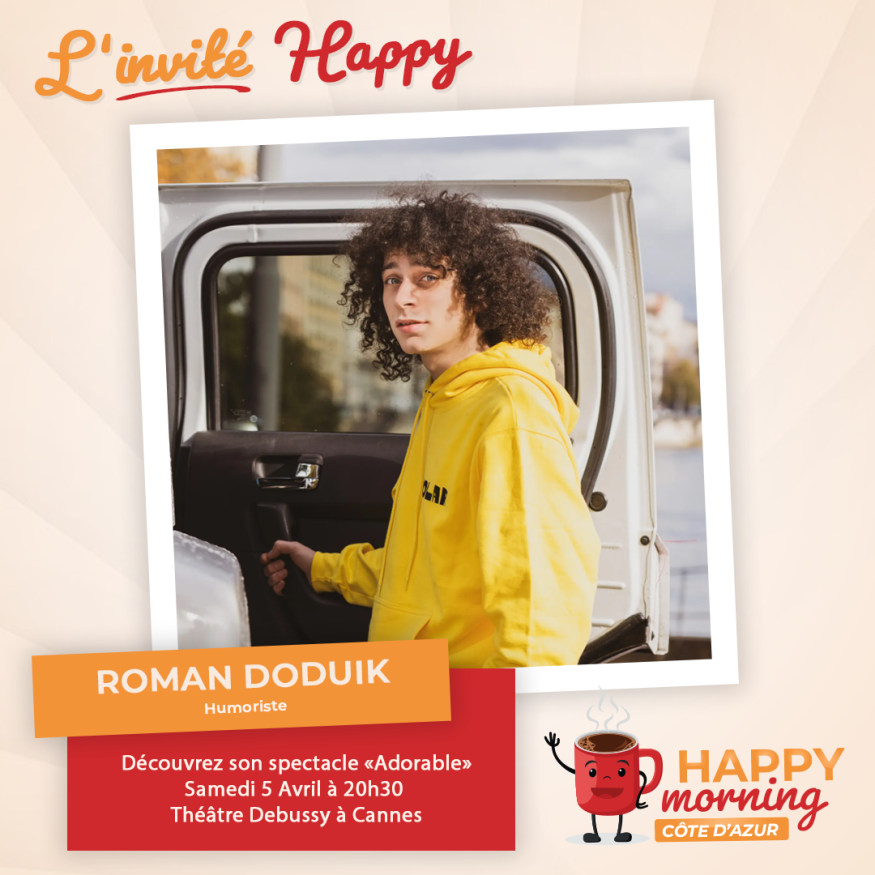 Dans l'émission happy morning Côte d'Azur, Loric reçoit l'Humoriste, Comédien Roman Doduik. Présentation et questions / réponses sont au programme de cet interview.