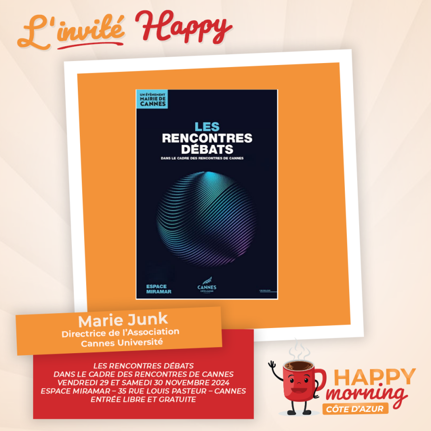 Dans l'émission happy morning Côte d'Azur, Loric reçoit Marie Junk Directrice de l'association Cannes Université. Présentation et questions / réponses sont au programme de cet interview.