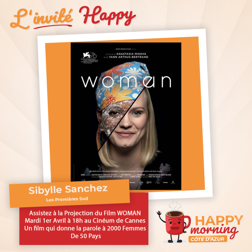 Dans l'émission happy morning Côte d'Azur, Loric reçoit Sibylle Sanchez des Premières Sud pour la Projection du Film Woman au Cinéum de Cannes La Bocca. Présentation et questions / réponses sont au programme de cet interview.